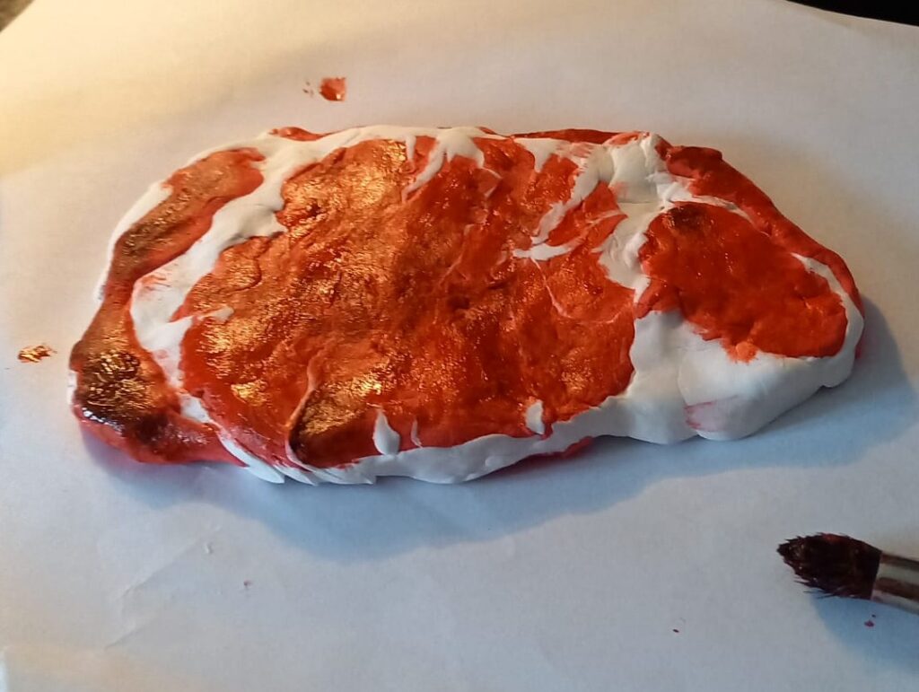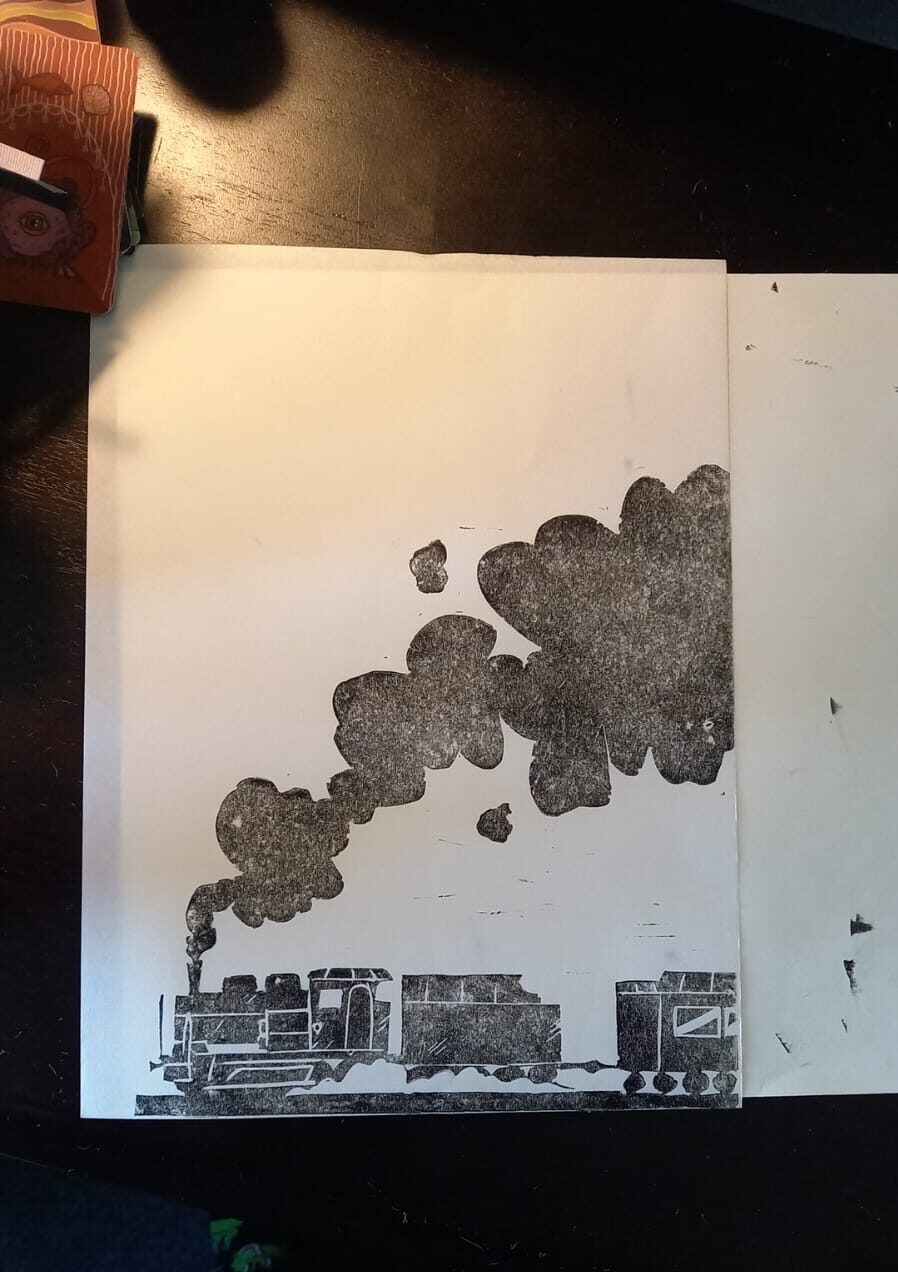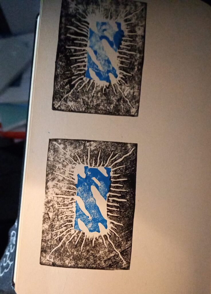 The brilliant Rin created a linoleum print for the central design and then experimented with it.