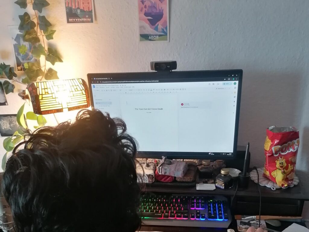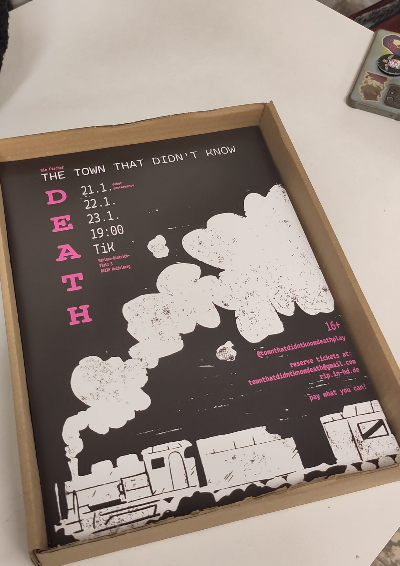 It started somewhere in Heidelberg, in a small kitchen… Well, actually it started a few metres down the corridor at Rin’s desk… Well, actually it started at a funeral, but that’s private. It began with a script written by our brilliant writer and director Rin Fischer (yes, that adjective is mandatory). At the beginning, there was a Google Docs Link quietly traded between friends. Then, there were more and more comments in said document. Then, there was the idea of putting the play on stage, which brings us back to said kitchen.