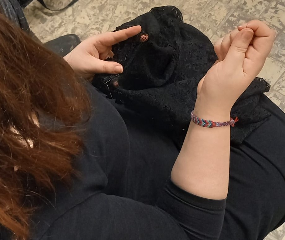 Arabella's veil, for example, is being hand-sewn, during rehearsals, as a way for Luise to pass the time between scenes. Besides costumes, there are also props to be made.